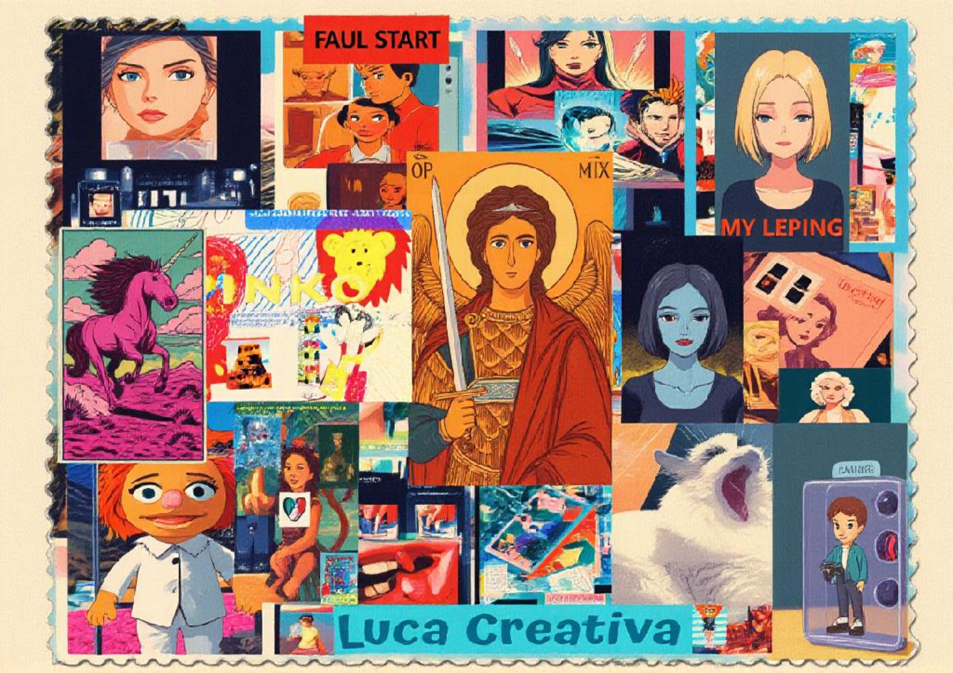 Nazywam się Luca Creativa i tworzę światy, które są otwarte dla wszystkich. W moich kolażach spotykają się sny, wspomnienia, duchowość i codzienność — anioły zaglądają do kuchni, portrety splatają się z naturą, a światło opowiada historie, których nie da się wypowiedzieć słowami.
