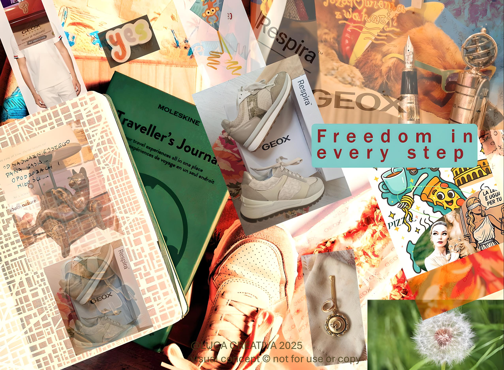 Tagi: #LuceCreativa #GEOX #Respira #FreedomInEveryStep #ArtCollage #FashionAndTravel #WłoskaModa #CollageArt #PodróżPoSwojemu #ItalianStyle #MoleskineMoments #CreativeSteps #VisualStory #DigitalCollage #SztukaKroku #FashionJourney #ItalyInMyHeart