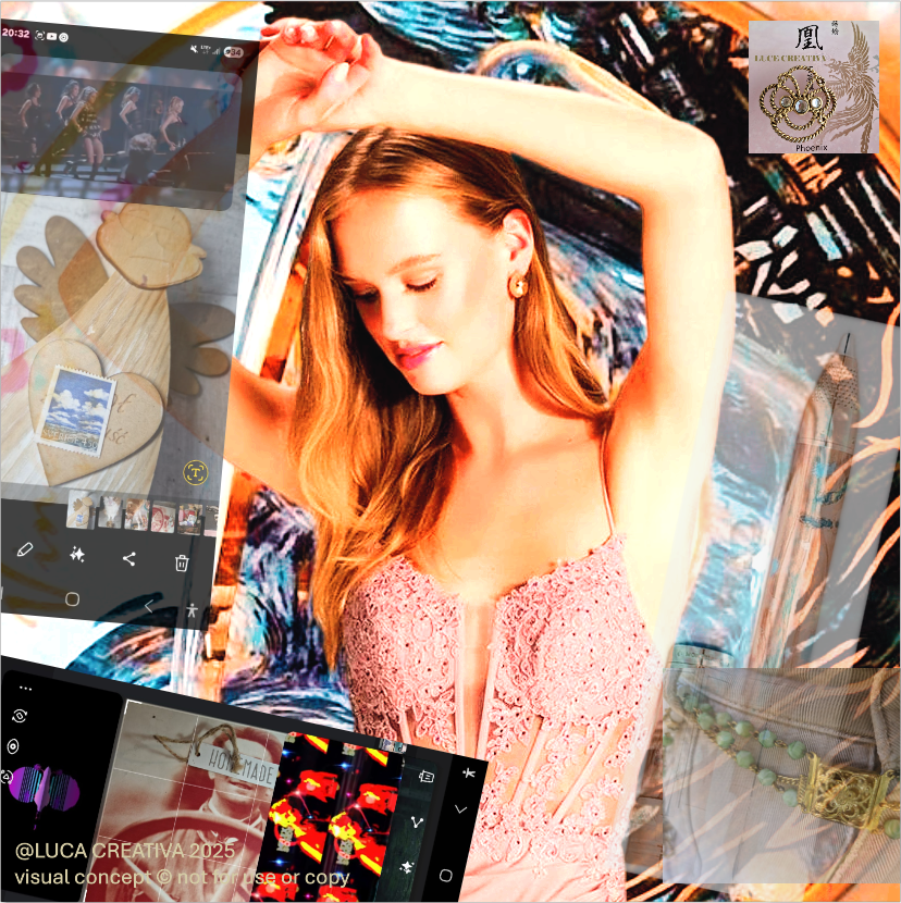 ✍️ OPIS (PL): Ten kolaż to afirmacja życia, które płynie dalej – z wdziękiem, zmysłowością i własnym rytmem. W centrum znajduje się pióro – symbol twórczości, elegancji i codziennych rytuałów artystki. Otoczony ciepłymi barwami, kobiecymi detalami i motywami vintage, kolaż zaprasza do świata, w którym piękno tkwi w codzienności. Włoski spokój, boliwijska nostalgia, kwiaty, kot, perfumy – wszystko tu ma znaczenie. Bo bycie z Lucą to podróż – nie tylko estetyczna, ale duchowa.